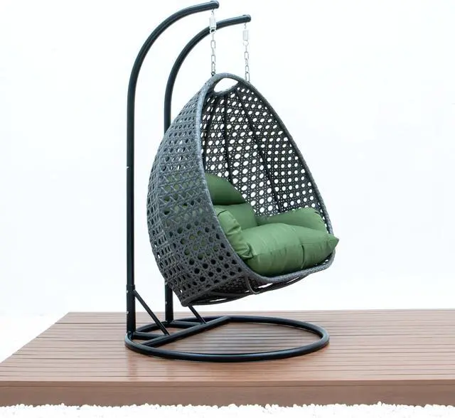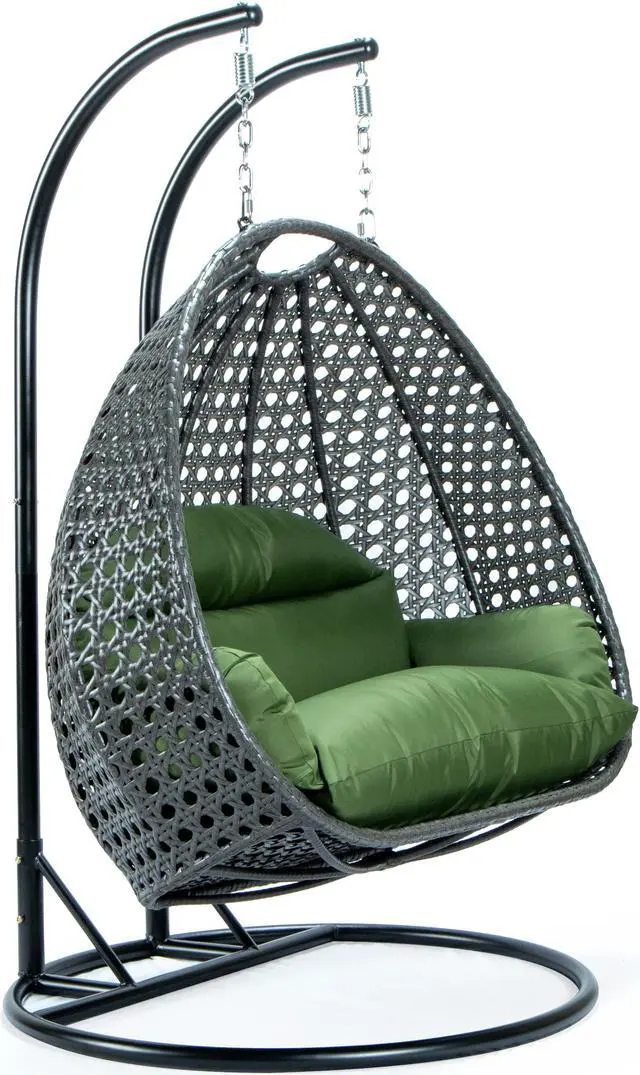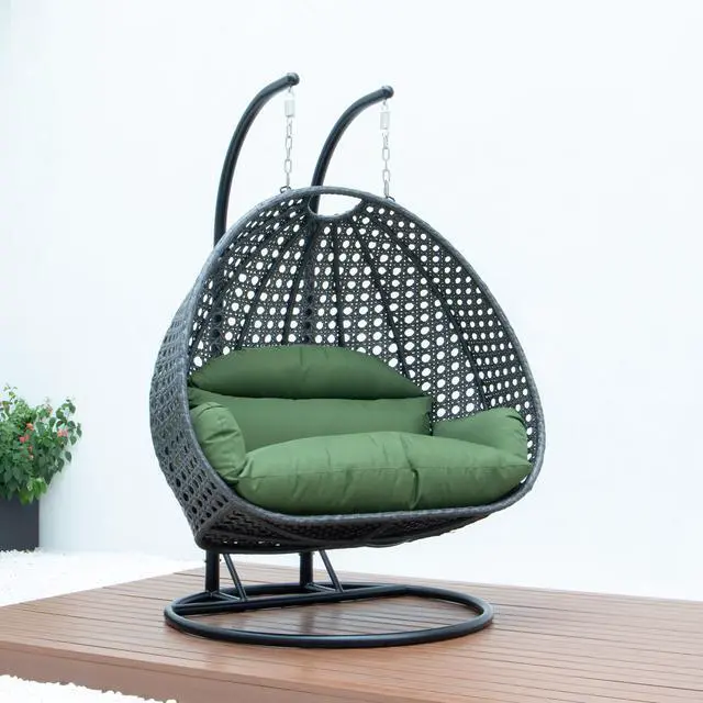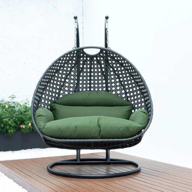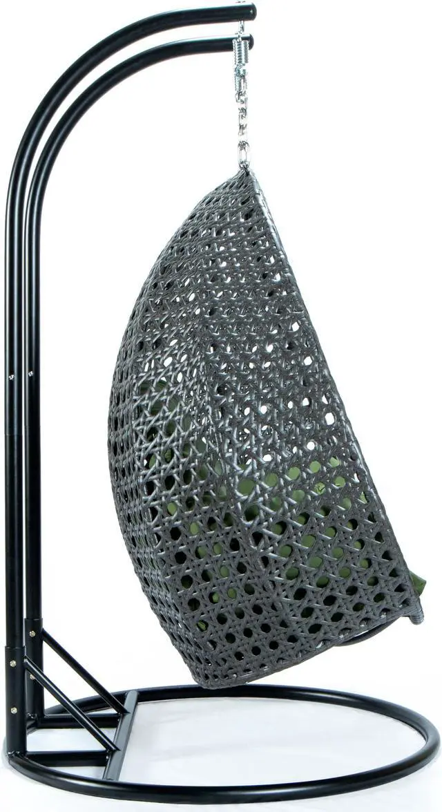 LeisureMod Charcoal Wicker 2 person Double Hanging Egg Swing Chair in Dark Green