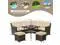 Comes with 2 loveseats, 1 corner sofa, 1 table and 2 ottomans