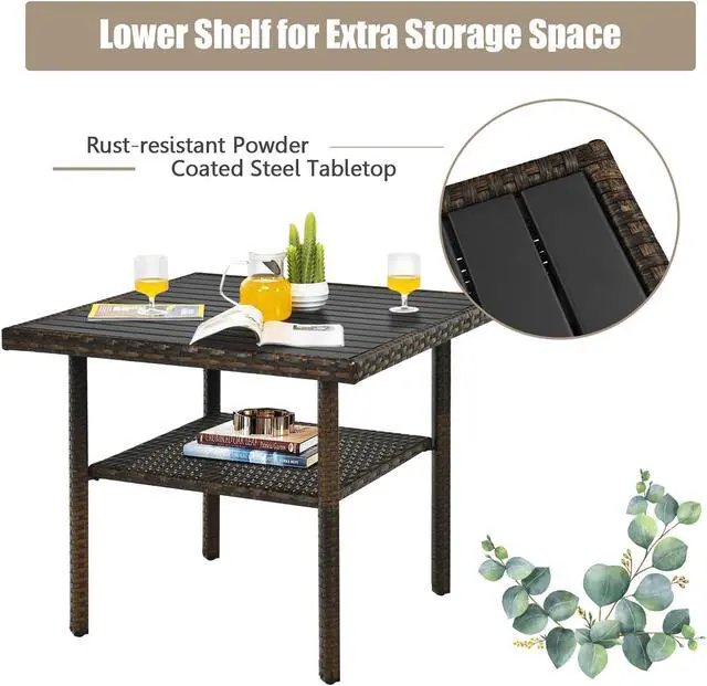 Spacious and rustproof steel tabletop can hold your drinks, meals, etc