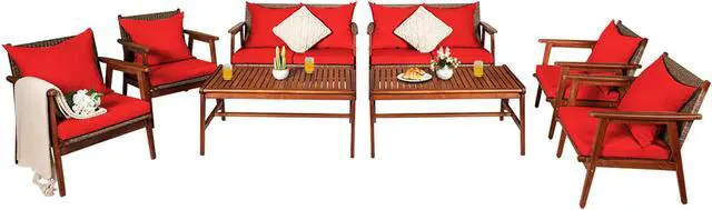 Do you want to have a private corner in your garden or patio? Our 4-piece furniture set is a good choice for you. The frame of set is made of premium solid wood and rattan, which ensures incredible durability and offers a beautifully textured look for long time. All the single chairs and loveseat are equipped with soft and high-resilient cushion for seat and backrest. You will get excellent comfort if you sit on the sofa. With hidden zipper, the covers of seat and back cushion are easy to be taken off and washed if it gets stained or dirty. And the set can be placed both in outdoor and indoor to be a good décor.