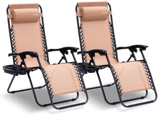 The SereneLife Adjustable Zero Gravity Lounge Chair Set provides comfort and functionality in one stylish package. This 2-pack set of zero-gravity recliners features removable padded headrest pillows, plastic cup holders, and an adjustable recline function for ultimate relaxation. The double stretch bungee cord ensures durability, while the breathable fabric keeps you cool and comfortable. These chairs are designed with anti-slip feet, a lockable recline function, and a detachable side table for convenience. Perfect for both indoor and outdoor use, these chairs provide a relaxing lounging experience in any environment.