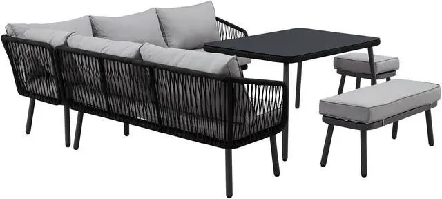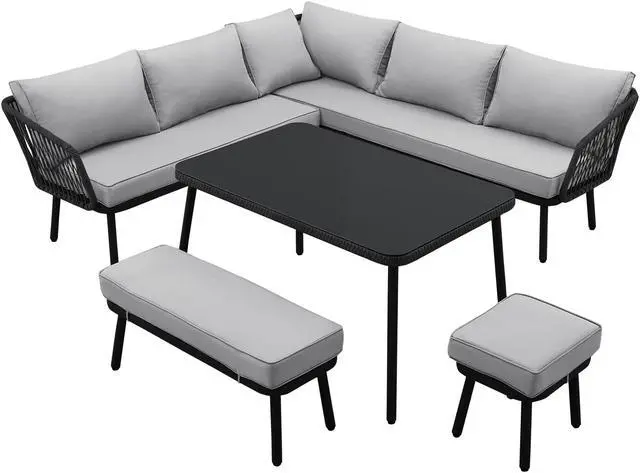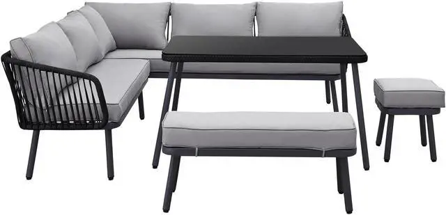 - ATTRIBUTES: Set Includes: 2 Sofas, 1 bench, 1 Stool/Ottoman. Indoor, Outdoor, All-Weather Faux Rattan Wicker Design. Removable and Washable Cushions. Fade Resistant, UV Resistant.