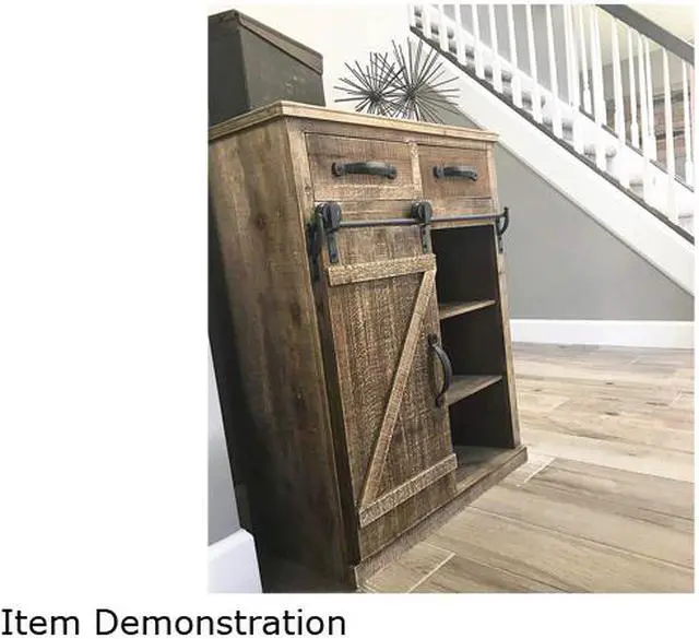 Brown Wood Rustic Sliding Barn Door Console Cabinet Storage Home Organizer
