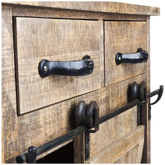 Classic American Country Style Single Barn Door With 2 Drawers Vintage Wooden Cabinets