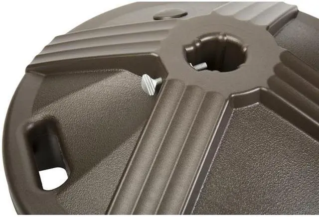 Support your patio umbrella without worrying about cracking and fading. The US Weight Umbrella Base is crafted with a U. V. stabilized polymer that will not rust or dent and can withstand the elements in any weather climate. The base accommodates 1" and 1.75" poles and should be used with a patio table. This base can either be prefilled with 50 pounds of a solid concrete core or empty and ready to be filled with sand or gravel. When filled with sand or gravel, the umbrella base weighs approximately 35-40 pounds not fill with water.