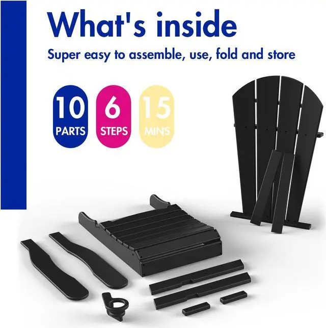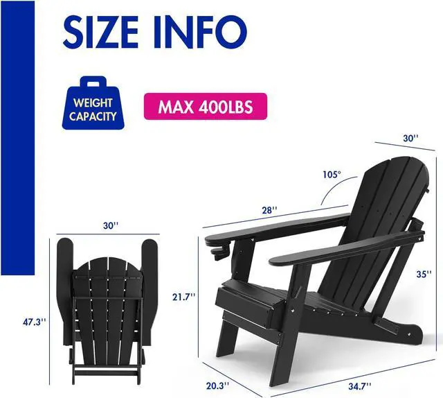 • Ergonomic & Foldable Adirondack chair is UPGRADED in 2023! A perfectly hidden cup holder is added to the right arm, providing a spacious room for drinks or media devices. Instead of using troublesome pins and chains, we designed the reclined legs, making it even more sturdy.