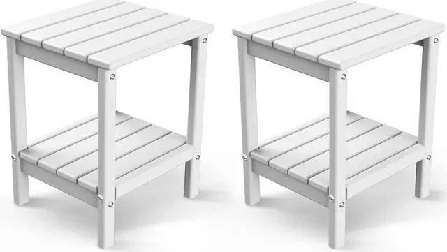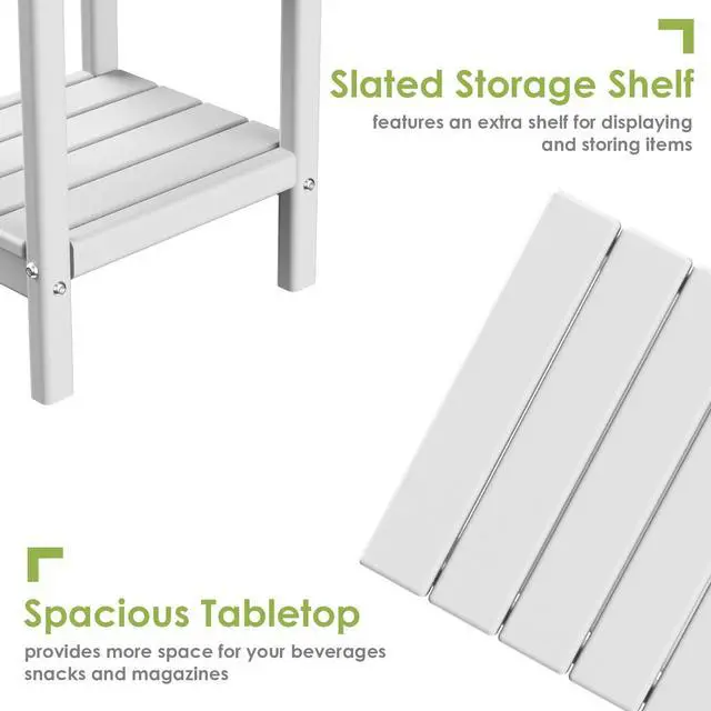 JiffyPoint Adirondack Outdoor Side Table, 14 x 13 HDPE Plastic All Weather End Tables with Storage Shelf for Poolside Indoor Outside Front Porch Living Room Patio Backyard Campfire, White