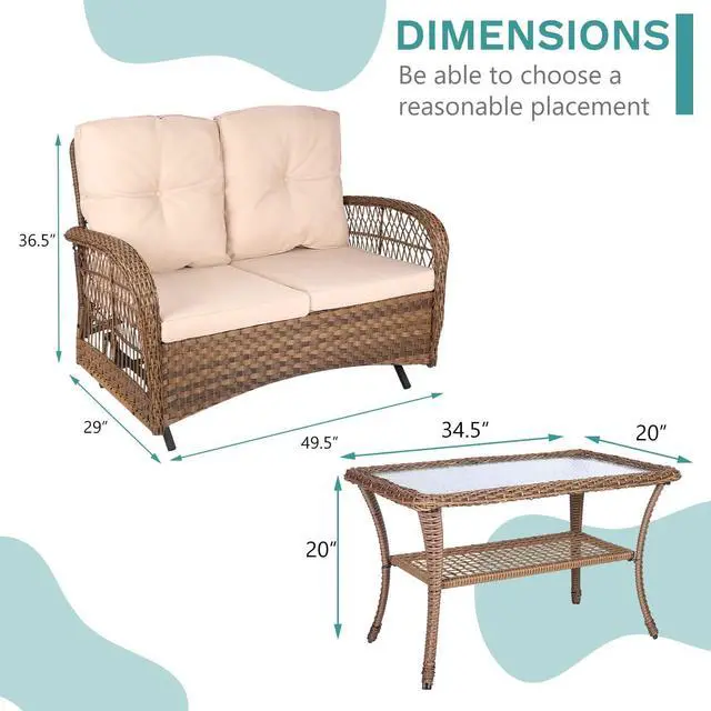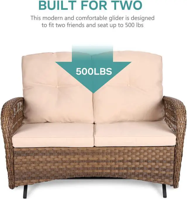 With concise and rustic design, these outdoor rocking bench feature neutral tones of brown and beige to compliment all existing furniture, home or outside colors, and add a touch of modern and elegance for your garden, backyard, porch or patio. With the rocking feature, you can fully enjoy leisure time with your family and partners.