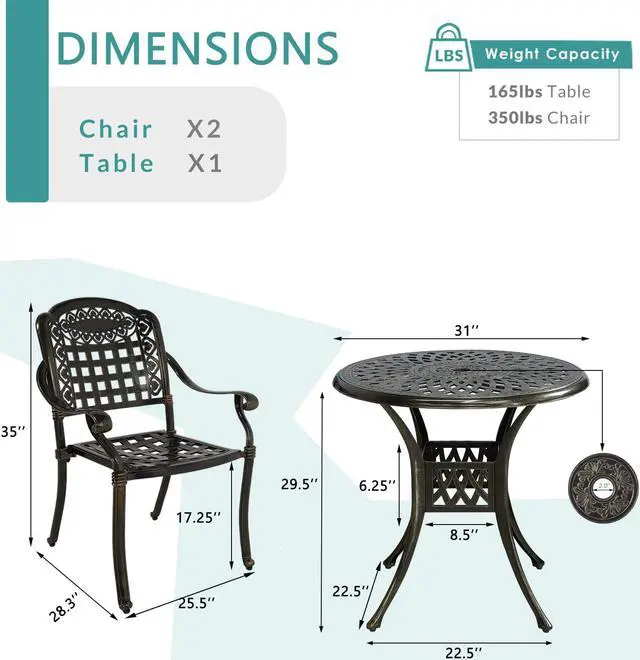| Dimension of Each Chair | 25.5"(L) x 28.3"(W) x 35"(H) |