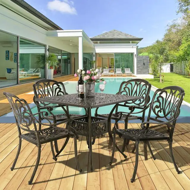 This MEETWARM patio Set includes 1 square table and 4 chairs, meets all of your outdoor furniture needs, adding style to your space without sacrificing comfort. The chairs fit perfectly around the table for backyard family dining, picnics, or lounging poolside with friends, match any decor and suitable for outdoor and indoor use.