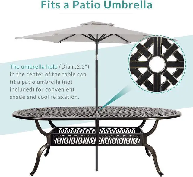 Featuring a 2.2'' umbrella hole in the center of the table for your favorite patio umbrella.