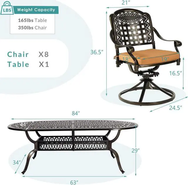 | Package Includes | 1 X Table, 8 X Chairs, 8 Cushions,1 X User Manual |