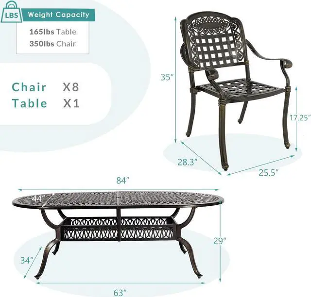 | Package Includes | 1 X Table, 8 X Chairs, 1 X User Manual |