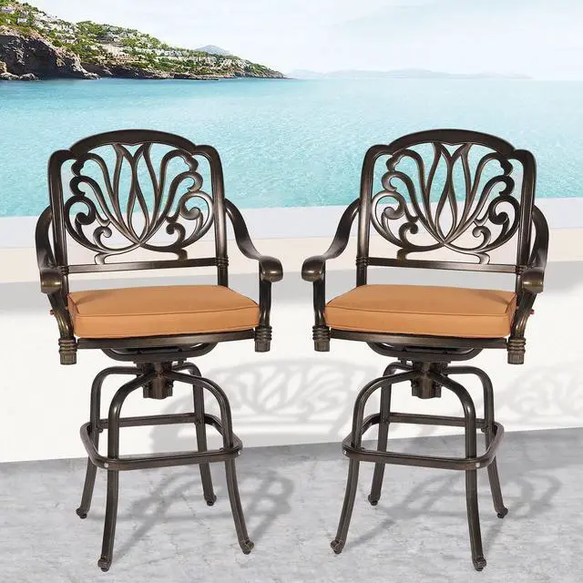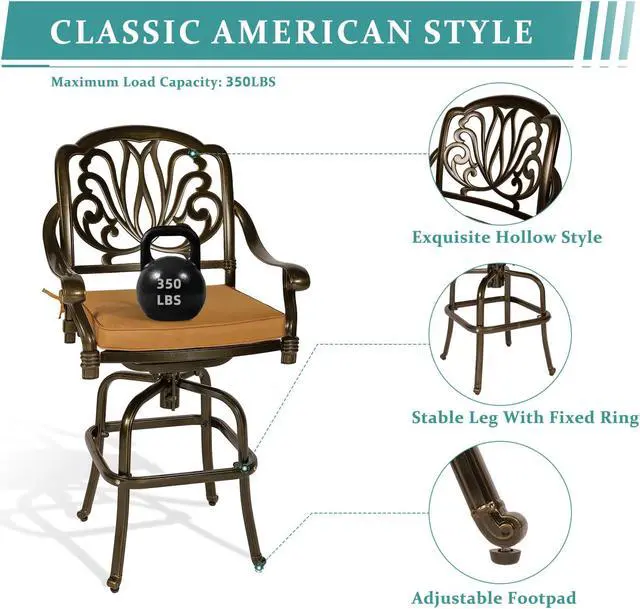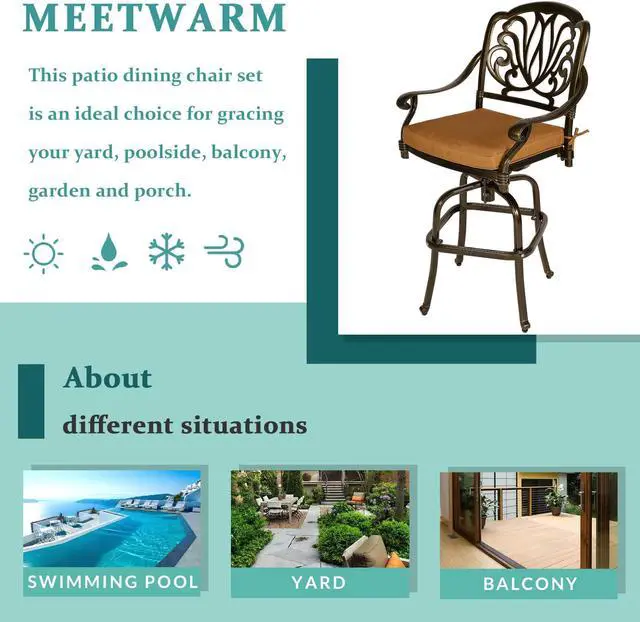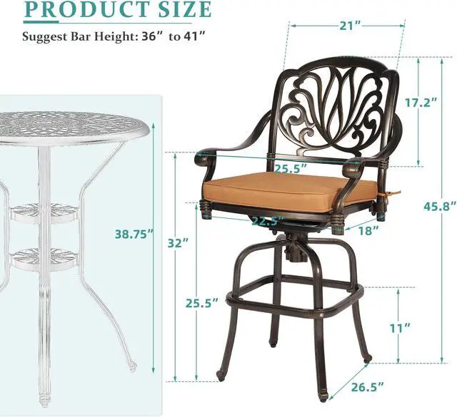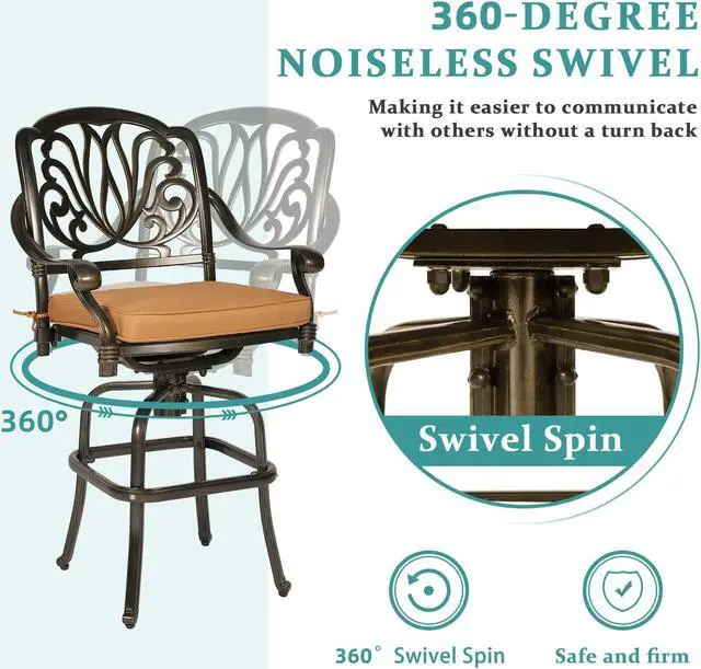 360 degree swivel design with square base makes the patio bar chair allows you enjoy the scenery from different angles and talk with others from different angles.