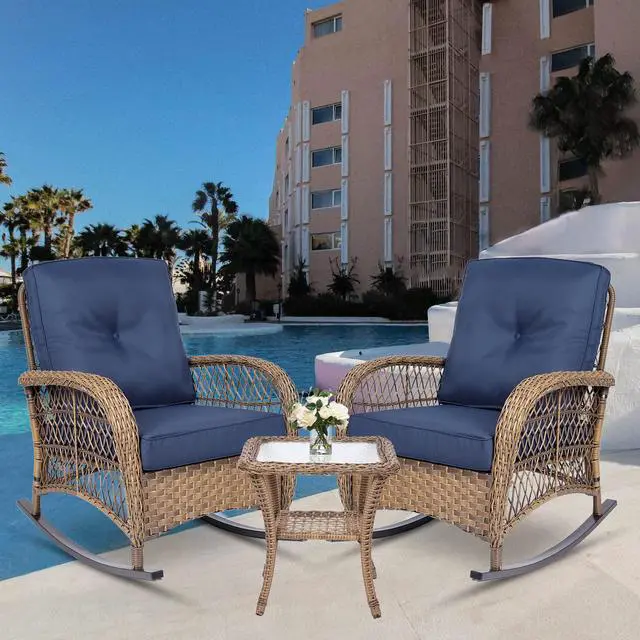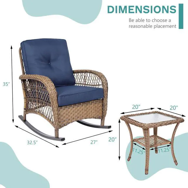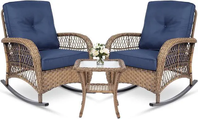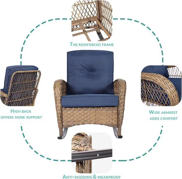 Add comfort and style to your outdoor space with this MEETWARM Rocking Chair with cushions. This rocking chair is made of high-quality all weather PE wicker which is durable and UV-resistant. Unlike real wicker which dries out and cracks, which means it stays like new season after season. The metal frame is galvanized to be solid and rust-resistant for long-time outdoor use.