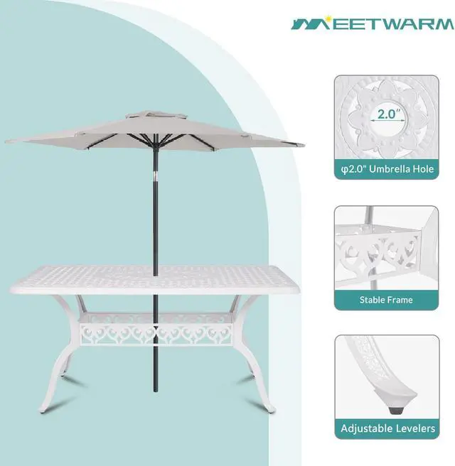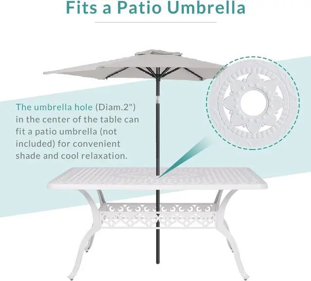 Featuring a 2'' umbrella hole in the center of the table for your favorite patio umbrella.