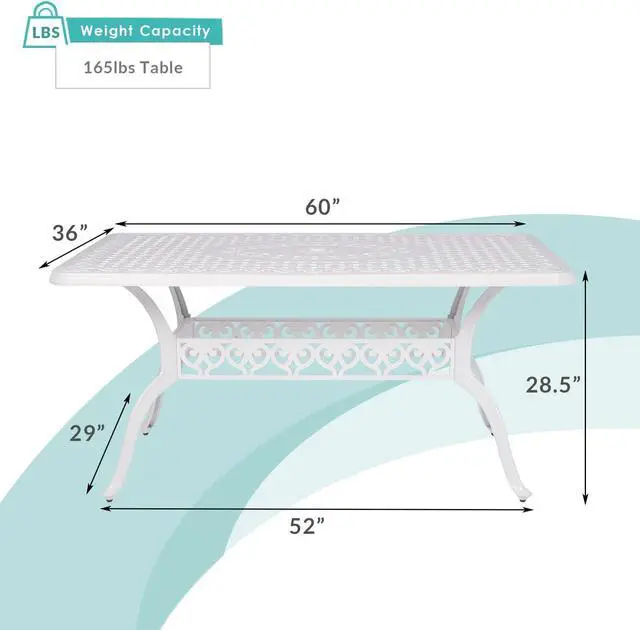 Dimension of Table: 36" (L) x 60" (W) x 28.5" (H)