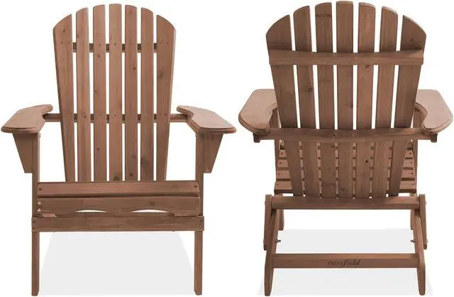 The wooden folding Adirondack chair is designed to withstand the elements and the wear and tear of regular use, making it perfect for outdoor spaces such as the porch, patio, poolside, beach, and around the firepit. The solid wood construction ensures that the chair will maintain its shape and structure, even in the harshest of weather conditions. Depending on your local weather conditions, periodically (once or twice annually) brushing, or spraying an exterior wood sealer will preserve the longevity of the wood and finish. Chair back comes pre-assembled, so all you need to do is assemble and secure the seat, legs, and armrests.