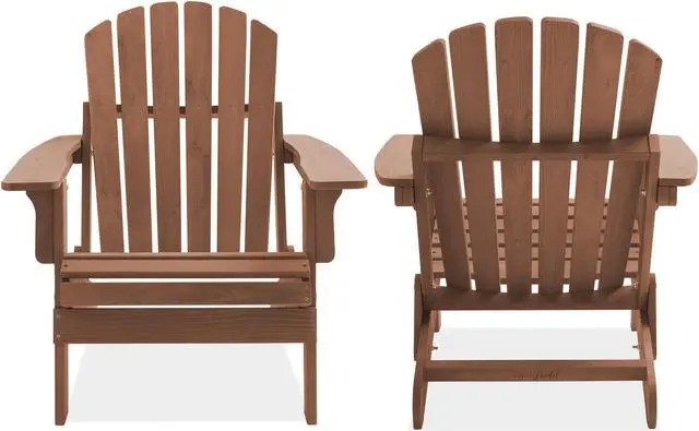 The oversized wooden folding Adirondack chair is constructed of solid wood, making it incredibly durable and long-lasting. This chair is designed to withstand the elements and the wear and tear of regular use, making it perfect for outdoor spaces such as the porch, patio, poolside, beach, and around the firepit. The solid wood construction ensures that the chair will maintain its shape and structure, even in the harshest of weather conditions. Depending on your local weather conditions, periodically (once or twice annually) brushing, or spraying an exterior wood sealer will preserve the longevity of the wood and finish.
