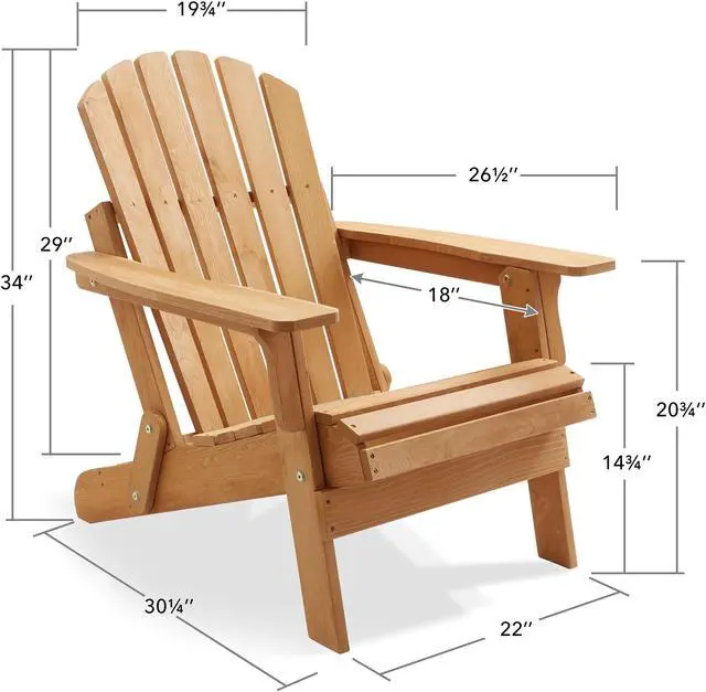 The oversized wooden folding Adirondack chair is constructed of solid wood, making it incredibly durable and long-lasting. This chair is designed to withstand the elements and the wear and tear of regular use, making it perfect for outdoor spaces such as the porch, patio, poolside, beach, and around the firepit. The solid wood construction ensures that the chair will maintain its shape and structure, even in the harshest of weather conditions. Depending on your local weather conditions, periodically (once or twice annually) brushing, or spraying an exterior wood sealer will preserve the longevity of the wood and finish.
