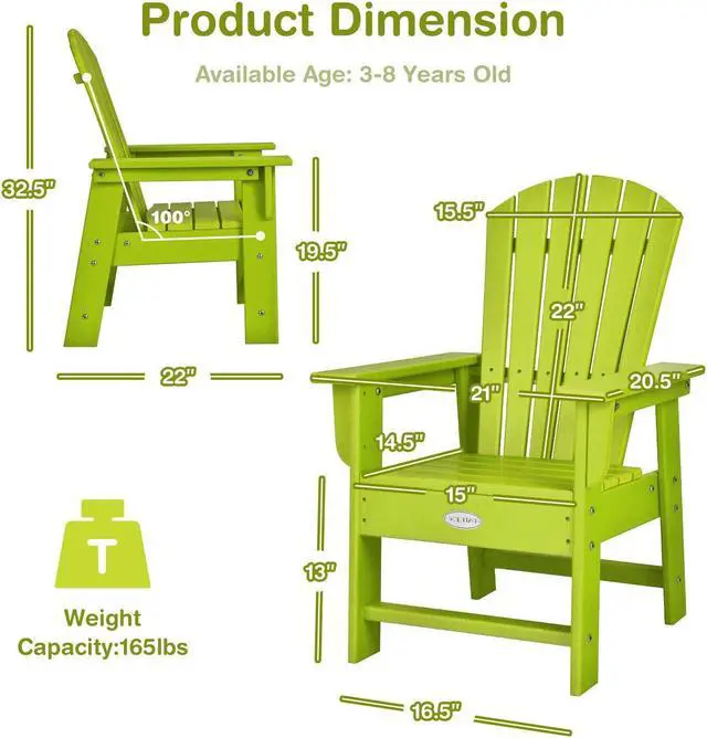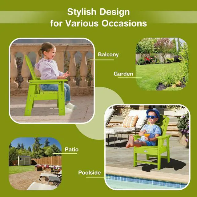 Suitable for Various Occasions: According to your various demands, this Adirondack chair with stylish design can be used on your balcony, patio, poolside, garden and porch, providing a great place for your kids to entertain or rest. And this versatile kids' armchair is able to be used as a toy chair or a dining chair.