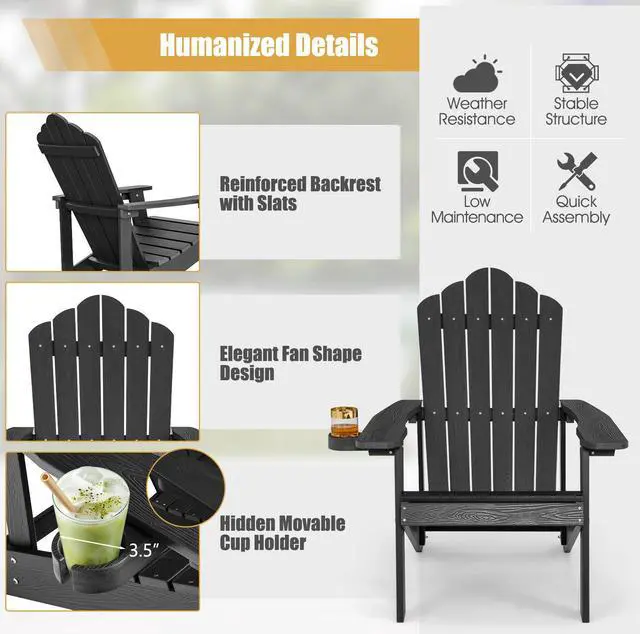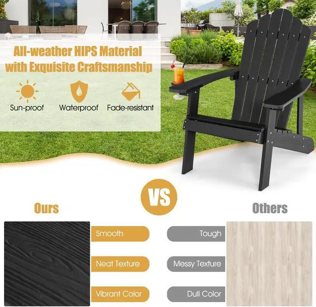 Weather Resistant Material: Crafted from high quality HIPS, the adirondack chair looks and feels like real wood. But compared with real wood, it is more weatherproof, durable, smooth and easy to maintain, thus can be withstand outdoor weather conditions for a longer time.