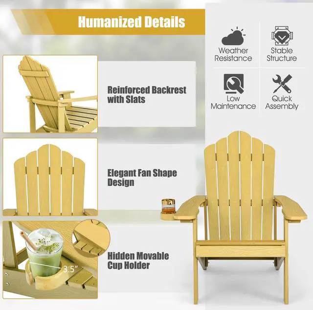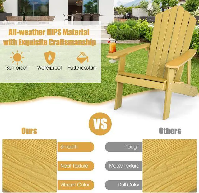 Weather Resistant Material: Crafted from high quality HIPS, the adirondack chair looks and feels like real wood. But compared with real wood, it is more weatherproof, durable, smooth and easy to maintain, thus can be withstand outdoor weather conditions for a longer time.