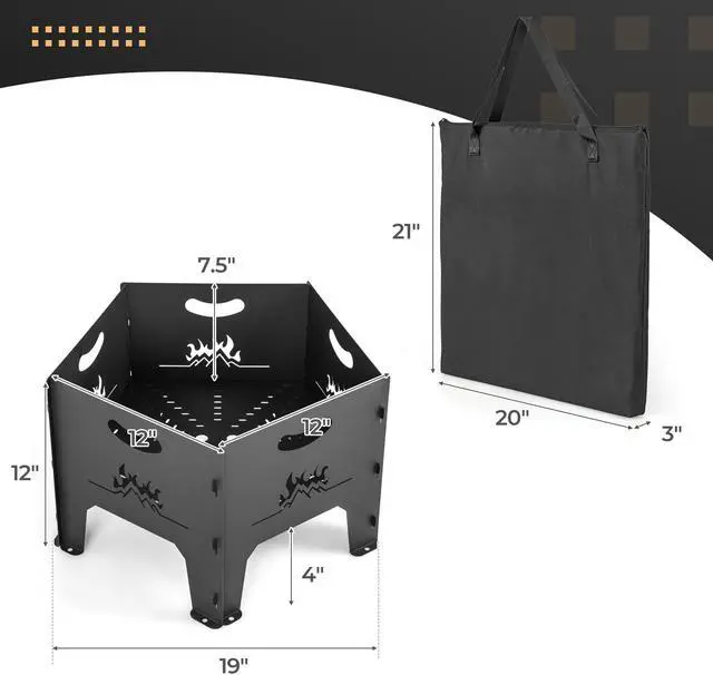 Portable Fire Pit: With its plug-in design, this camping fire pit can be easily disassembled. And the included carrying bag is ready to store all the parts, allowing you to take it wherever you want.