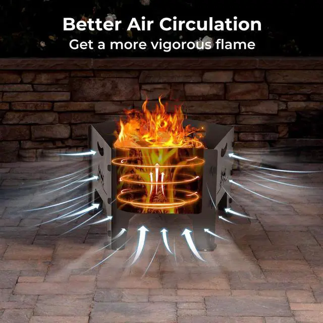 More Fuel Options: This portable fire pit accommodates different fuels, such as charcoals, firewood, pellets and more, making it suitable for various places, whether it's campsite or home.