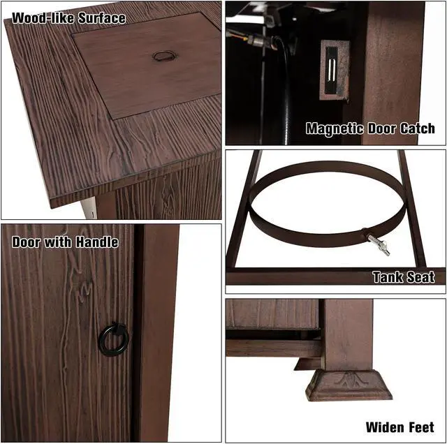 Unique Wood-like Tabletop: Adopt elegant wood grain tabletop, this 32" fire pit table is no longer monotonous, which matches well with other outdoor furniture. You can use it in the backyard, patio, balcony and so on.