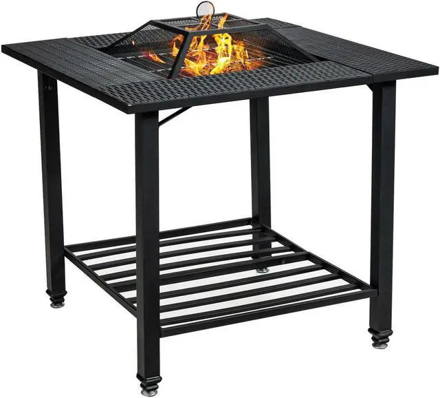 Multifunctional Fire Pit Table: This 4 in 1 square fire pit with necessary accessories can meet your different needs. With a removable lid, you can use it as a wood-burning pit or outdoor dining table. The fire pit not only is used as a BBQ grill, but it also serves as an ice bucket.