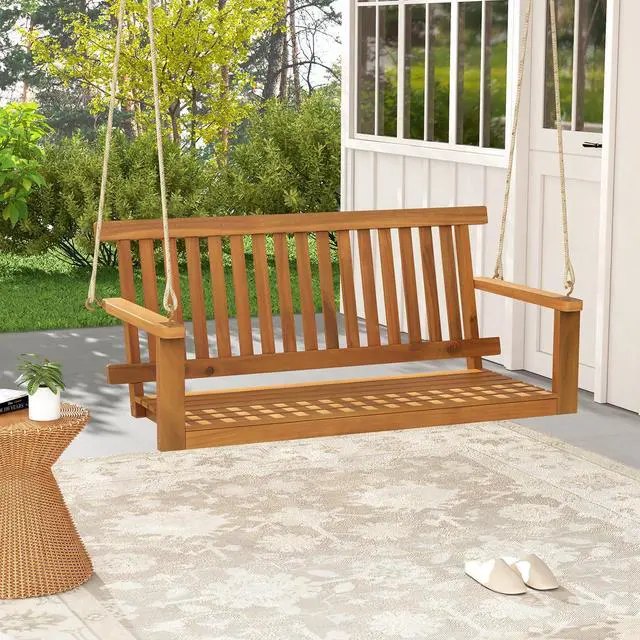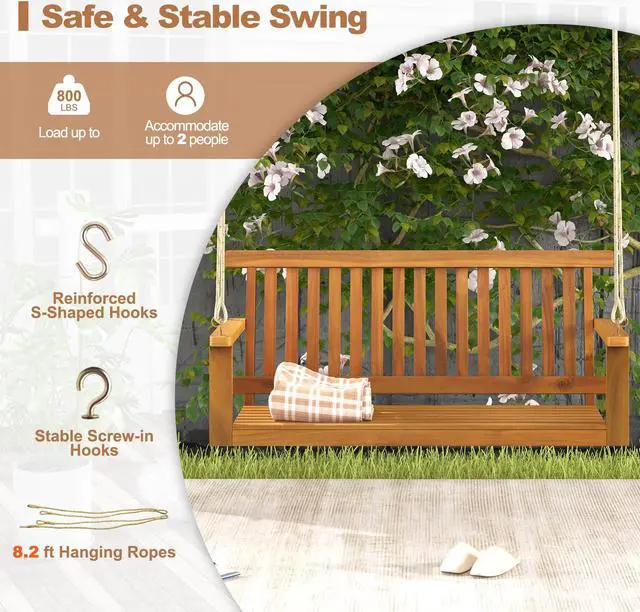 Acacia Wood Structure: The whole porch swing is made of high-grade acacia wood, which is sturdy and abrasion resistant for long-time use. Also, the wood frame is burr-free and natural for more elegance.
