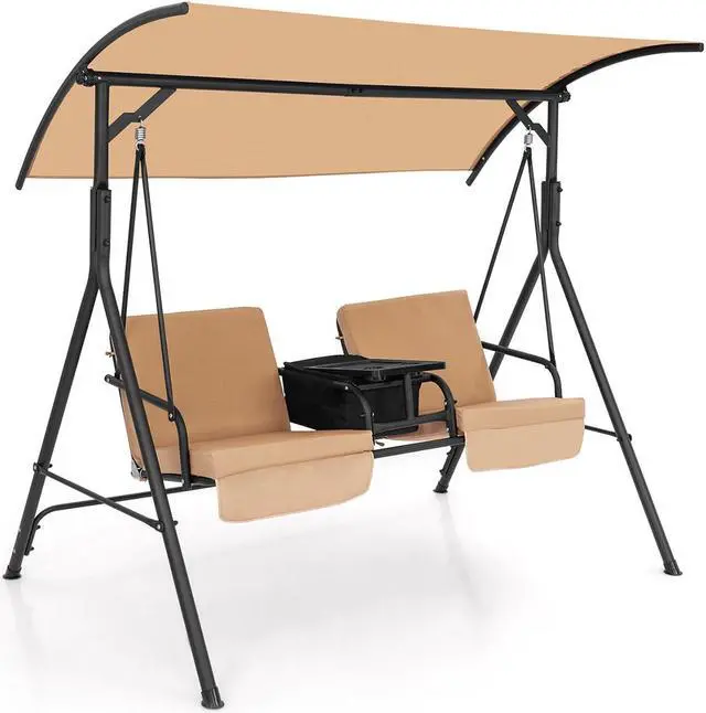 2-Person Swing Chair with Cushions: The double seat design can accommodate 2 people to swing together for twice the fun. Plus, the thickened back and seat cushions offer soft sitting experience. Each cushion is equipped with convenient fixing straps to fix it in place firmly.