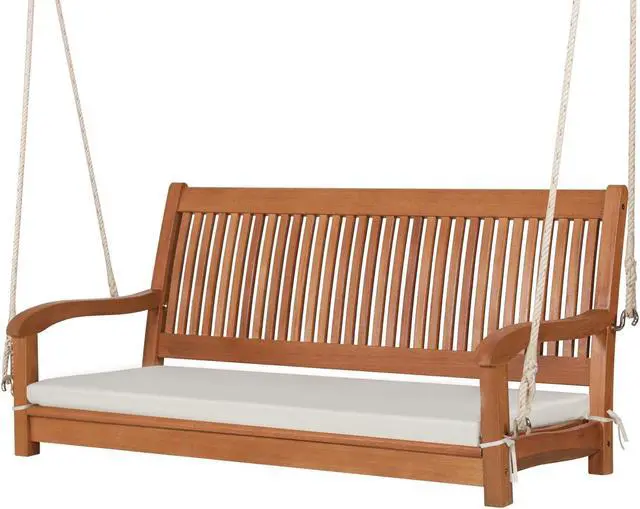Sturdy and Durable Structure: Featuring solid eucalyptus wood, the swing bench is durable enough for longer service time. Besides, the stable triangular structure and reinforced hooks ensure safety use and can hold up to 800 lbs. 118" hemp ropes are included, please make sure the hanging place is sturdy enough.