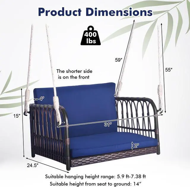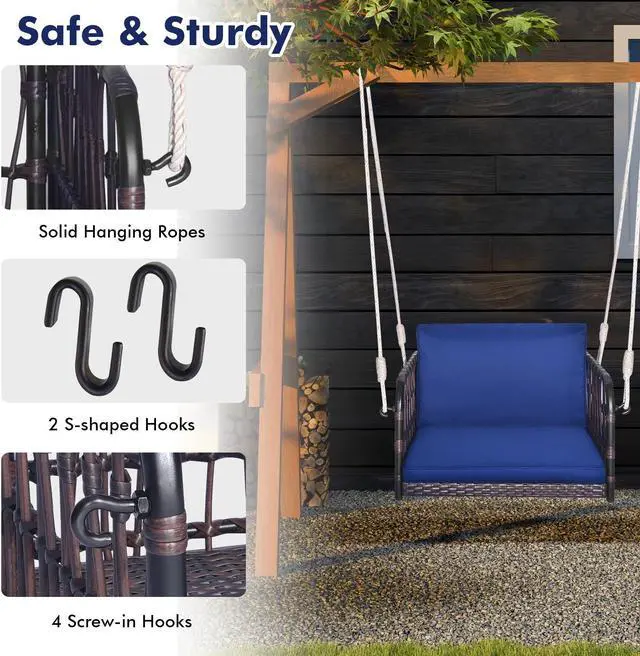 Cozy Seat with Cushions: This patio porch swing chair allows you to swing back and forth for endless comfort. Coming with soft seat and back cushions featuring high-density sponge, the seat is much cozier to sit. And the smooth zippers make the cushion covers easy to remove and maintain.