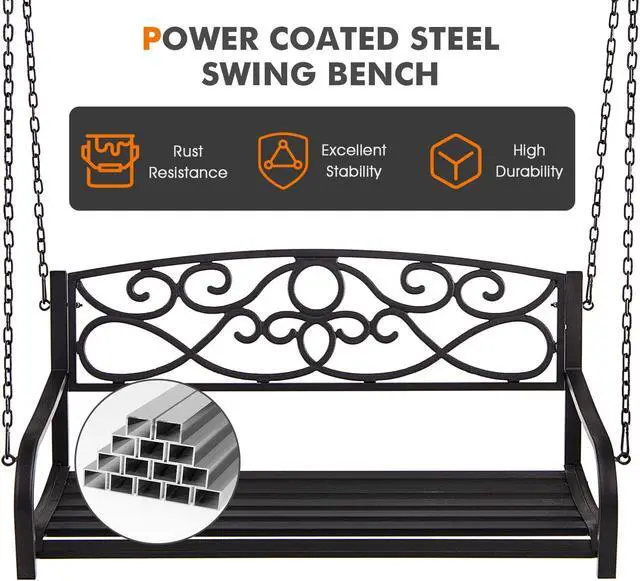 Wide and Comfortable Seat: The 49" wide sitting area is perfect for 2 people to swing together, allowing you to spend pleasant outdoor time with your beloved one. Also, the porch swing bench is quite comfortable to sit on, as its curved armrests well relax your arms and a breathable backrest keeps you cool in hot weather.