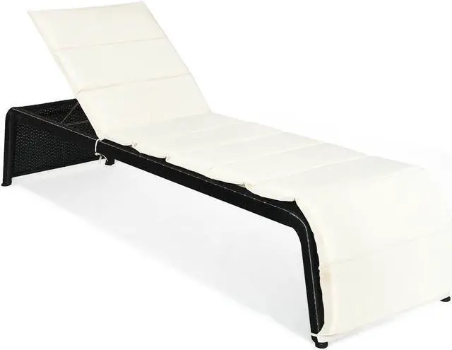 Outdoor Relaxing Lounge: Adopting cross-over weaving craftsmanship with a black glossy finish, the chaise lounge will be a great addition in your outdoor space like backyard, patio, poolside or garden. And the detachable cushion is easy to rinse and fold for storage.