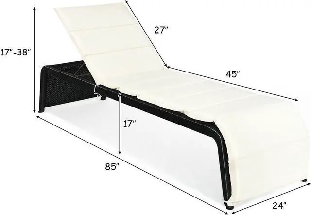 Easy to Assemble and Clean: According to instructions, it is very convenient to assemble the lounge with the required accessories. With a waterproof surface, the lounge is easy to clean just with a damp cloth. Overall dimension: 85" x 24" x 17"-38" (L x W x H). Weight Capacity: 700 lbs.