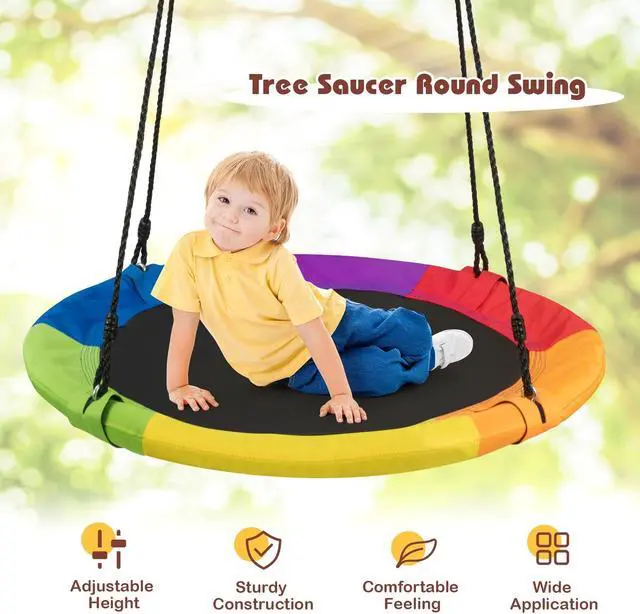 Interesting Uses and Ideal Gifts: How can an interesting childhood experience lack the swinging project? This round tree swing is the perfect gift for boys and girls, which can accompany them to grow up happily. This outdoor swing provides children and parents with ample space to lie down, swing, or watch the sky.