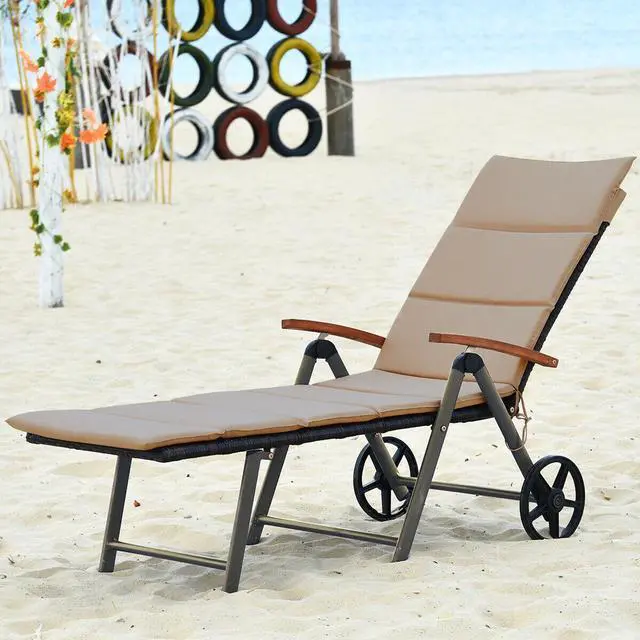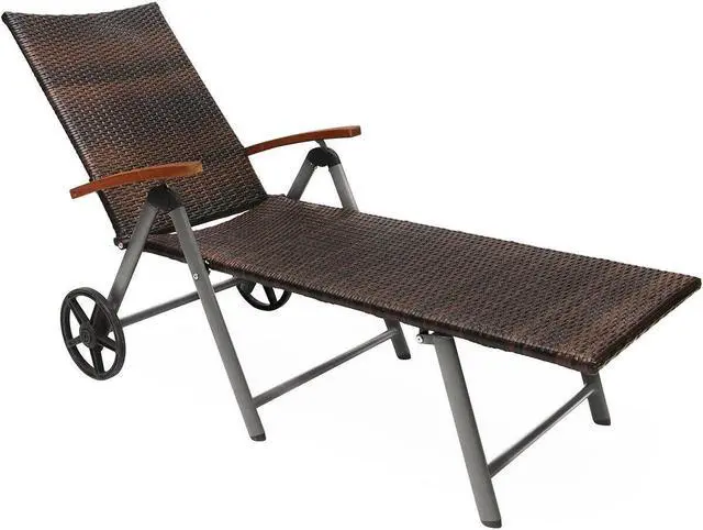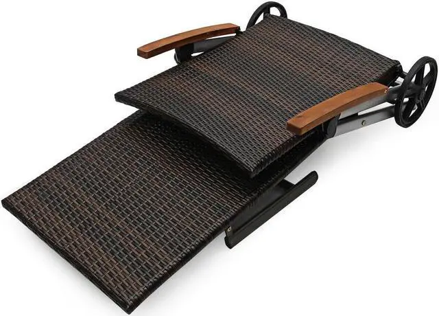 Outdoor Relaxing Lounger Chair: Adopting the cross-over weaving craftsmanship with brown glossy finish, this patio chaise lounge chair with wheels will be the eye-catching addition in your backyard, patio, poolside or garden. And its folding design makes it easy to carry to the beach, becoming your good sunbathing and pool companion.