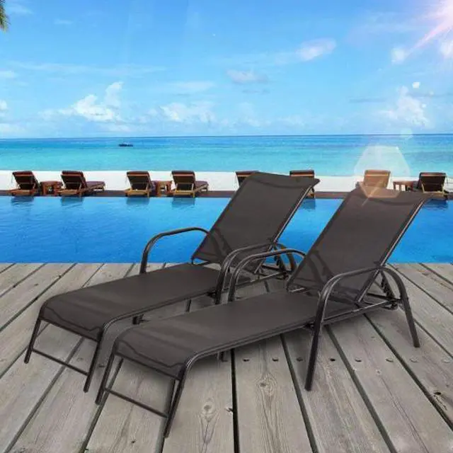 This set of pool chaise lounge chairs made of breathable fabric and sturdy steel frame with extremely durable powder coat finish is very sturdy and comfortable.