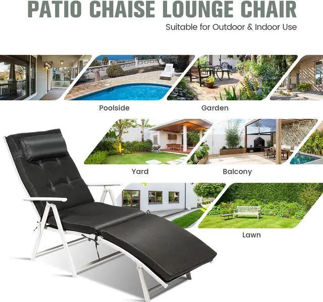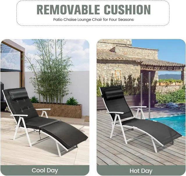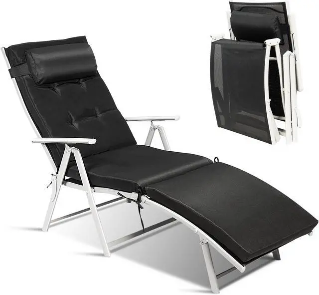 Cushion and Pillow Included: This recliner includes a removable cushion and headrest to provide you with additional comfort. The 2.5" thick high-density sponge is soft and does not easily collapse. Most importantly, the cushion can be fixed to the chair with straps to avoid movement. You can enjoy your time or nap on the chair at the beach, poolside, balcony, backyard, etc.