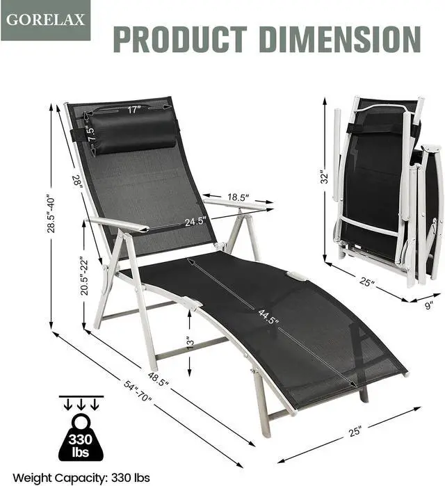 Lightweight and Foldable Design: This lounge chair does not need to be installed, just unfold the chair and fix the cushion and headrest to use. Lightweight and portable design makes it easy to transport or carry anywhere. In addition, it can be folded quickly to facilitate storage without taking up too much space.