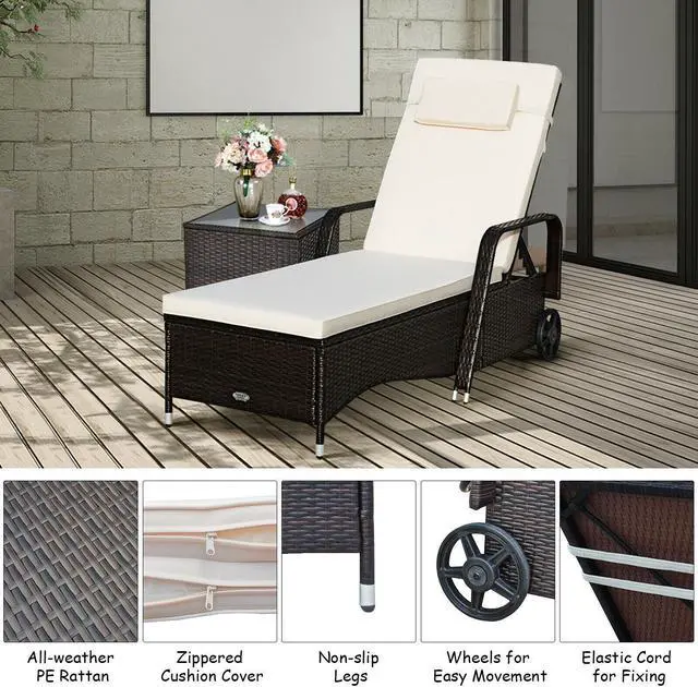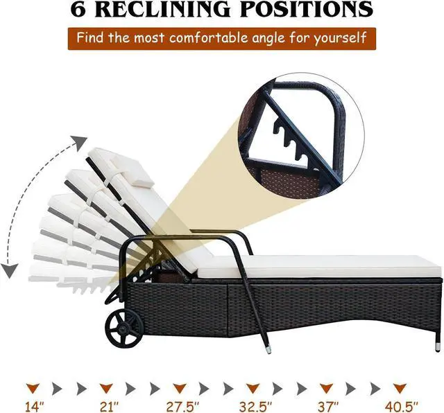 SlickBlue Outdoor Recliner Cushioned Chaise Lounge with Adjustable Backrest