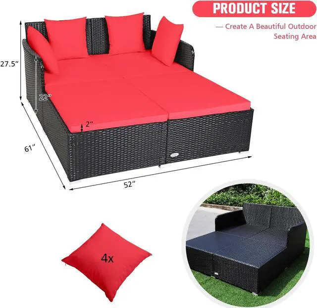 Spacious Rest Space: Compared to the average lounge chair, this rattan daybed with overall size of 61" x 52" x 27.5" (L x W x H) is roomy enough to be friendly for people who are tall without any discomfort of crowding. This rattan sofa bed even allows you to chat with your best friends while lying down and enjoying your leisure time.
