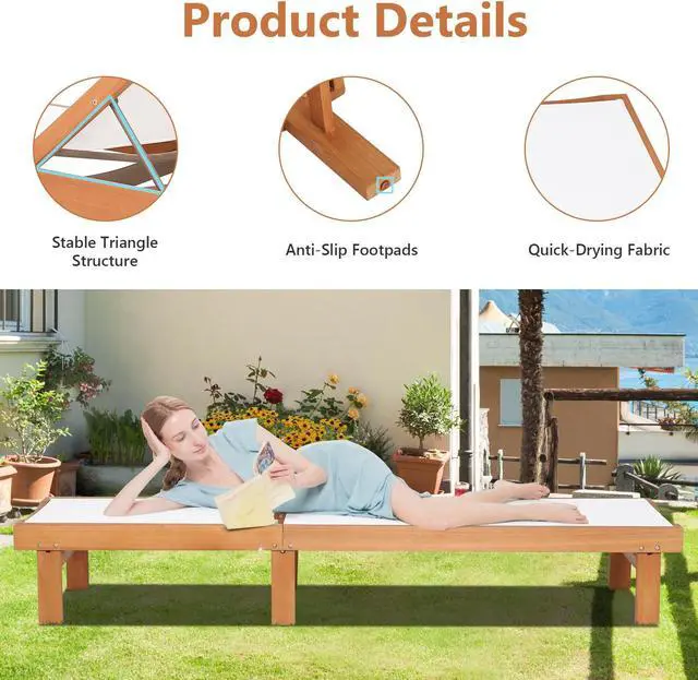 Designed for Outdoors: Combining comfort and firmness into one, this adjustable chaise lounge chair provides practicability for long-time outdoor use. No matter if you place it in your patio, garden, backyard or poolside, this outdoor 5-position recliner will be the perfect accompaniment for leisure time.