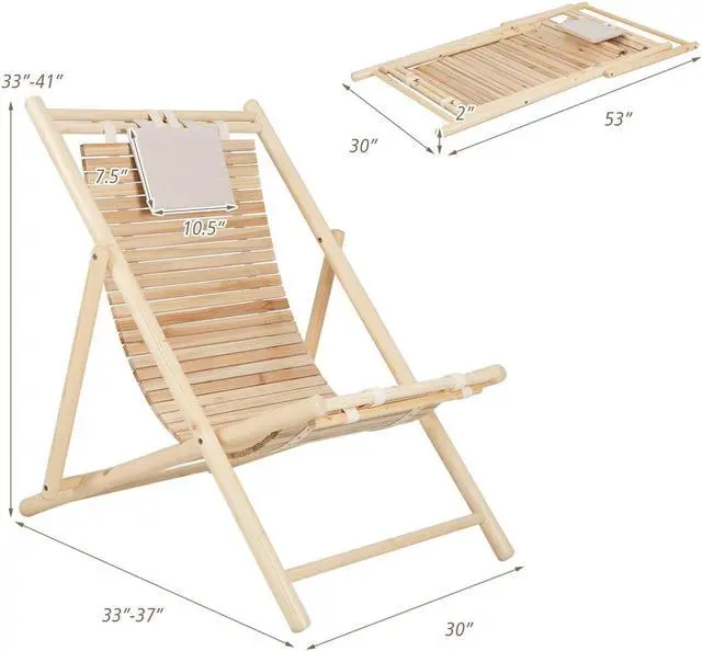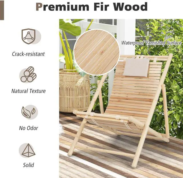 Solid Fir Wood: Constructed of natural fir wood, this outdoor sling chair not only comes with 330 lbs max load but ensures burr-free surface for smooth touch. Likewise, the natural color endows this beach chair with rustic appearance.