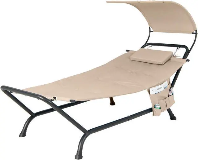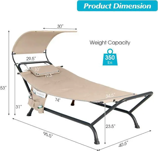 Sunshade Canopy and Storage Bag: This hammock comes with a curved canopy to protect you from the hot sun while you relax outdoors. The waterproof, sun-proof, and wear-resistant polyester fabric supports long-lasting outdoor use. Besides, the side storage pocket is convenient to store your tablet, phone, magazines, or sunglasses and keep them at arm's reach.