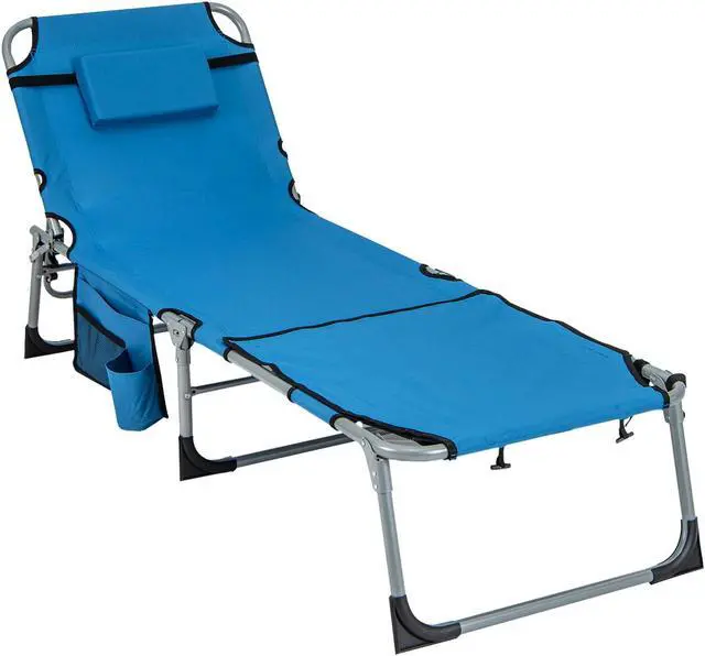 5 Adjustable Positions: With a 5-level adjustable backrest and 2-level adjustable footrest, the beach lounge chair will offer you great flexibility to lie flat, recline or sit up. Consequently, you can devote yourself to reading, sunbathing and napping in the most comfortable position.