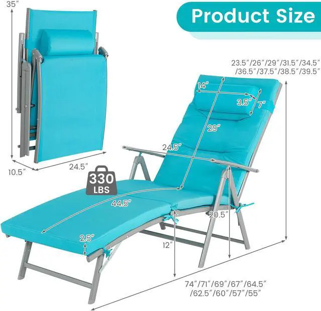 Quick-Folding Design: When you finish lounging or relaxing, the patio recliner can be quickly folded after the cushion and pillow are removed. The compact folding size makes it easy to carry and space-saving to store, bringing many conveniences to you.